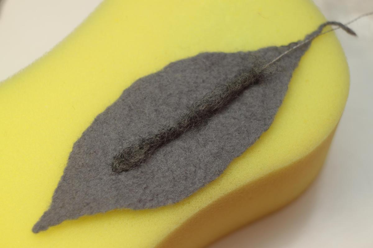 Цветок этот - абсолютно экспериментальный. Хотела вообще-то брошь... Но как-то разложилось у меня нечто прям-таки огромное )) поэтому решено было оставить орхидею в качестве декора для сумки. Сумка будет позже, когда появится достаточное количество серой шерсти. На этом цветке решила опробовать акрил в качестве декора (как известно, сам по себе акрил мокрым способом не валяется, потому как это абсолютно искусственное (или синтетическое?) волокно). Разложила тонкой паутинкой поверх лепестков. Сначала он ну никак прихватываться шерстинками не хотел. Но главное в таком случае - терпение и аккуратность. Не нужно торопиться сразу сильно тереть, слегка поглаживая, постепенно (совсем постепенно) усиливая нажим и скорость, можно добиться на мой взгляд очень красивого результата. Акрил красивыми завитушками приваливается к шерсти. Каркас решила к уже окончательно свалянным лепесткам привалять иглой.. не очень получилось. Как-то грубо смотрится.. В следующий раз буду делать по другой технологии. Но на лицевой стороне каркас не заметен для первого раза вполне сойдет